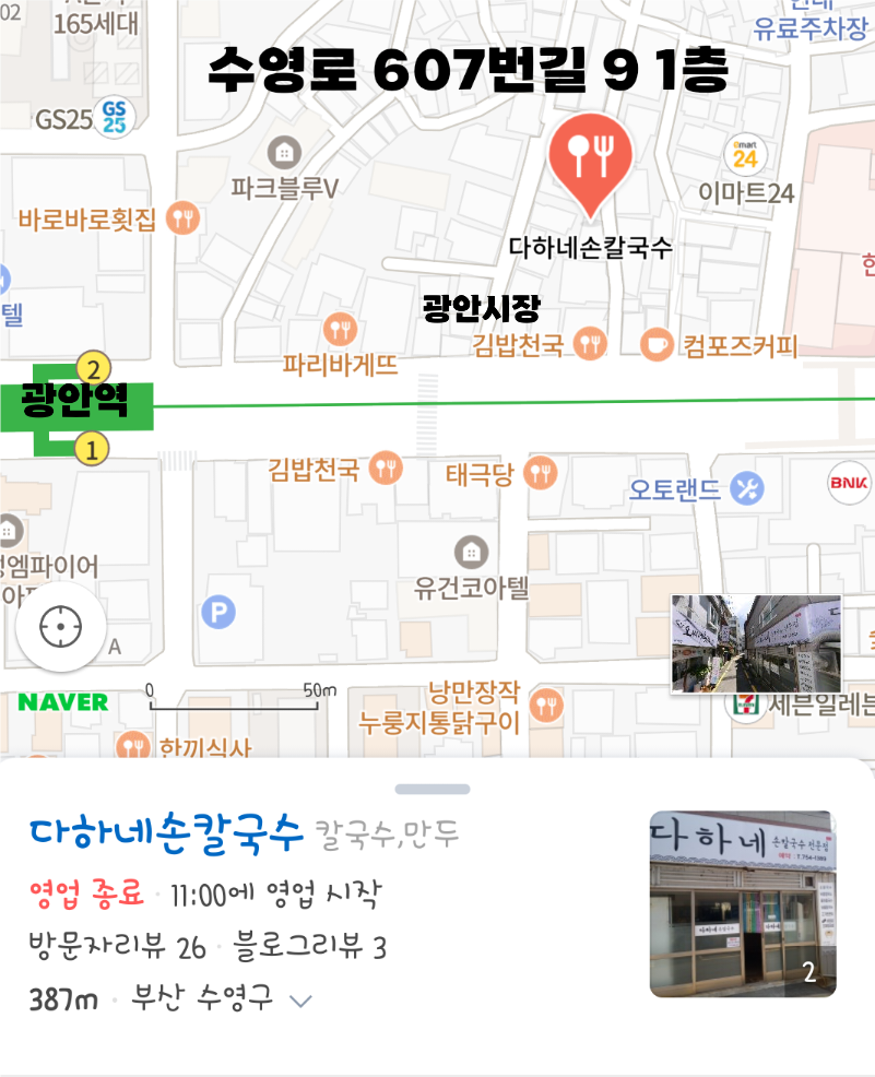 여기는 광안시장을 지나서 나오는 골목 안에 있다.